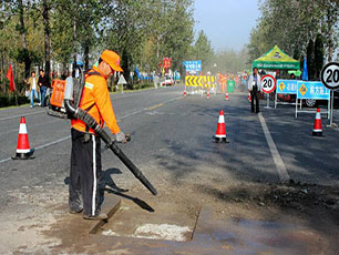 表層路面出現(xiàn)起砂病害修補前清理路面用水沖刷...